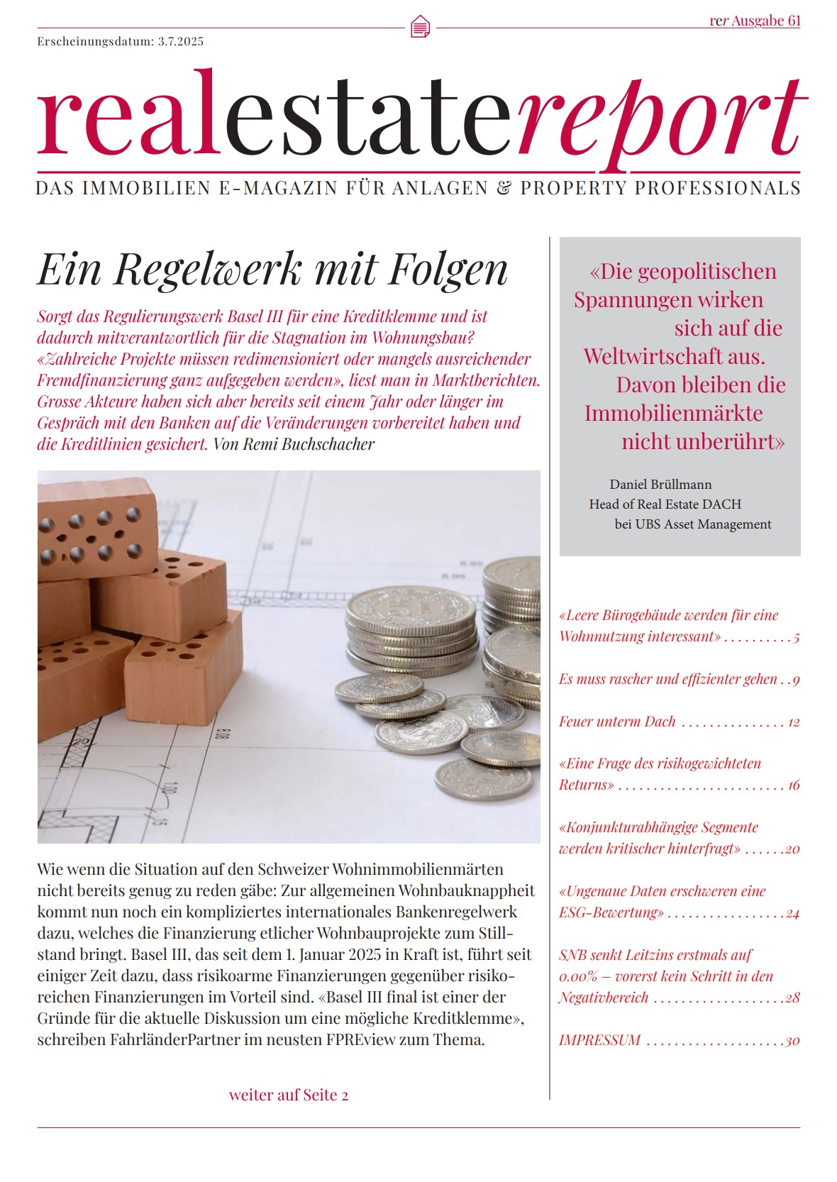 03.07.2025 Büroflächen werden zu Wohnraum – ein Perspektivenwechsel In der aktuellen Ausgabe des RealEstate Report spricht Journalist Remi Buchschacher mit Ingo Bofinger (Geschäfts...